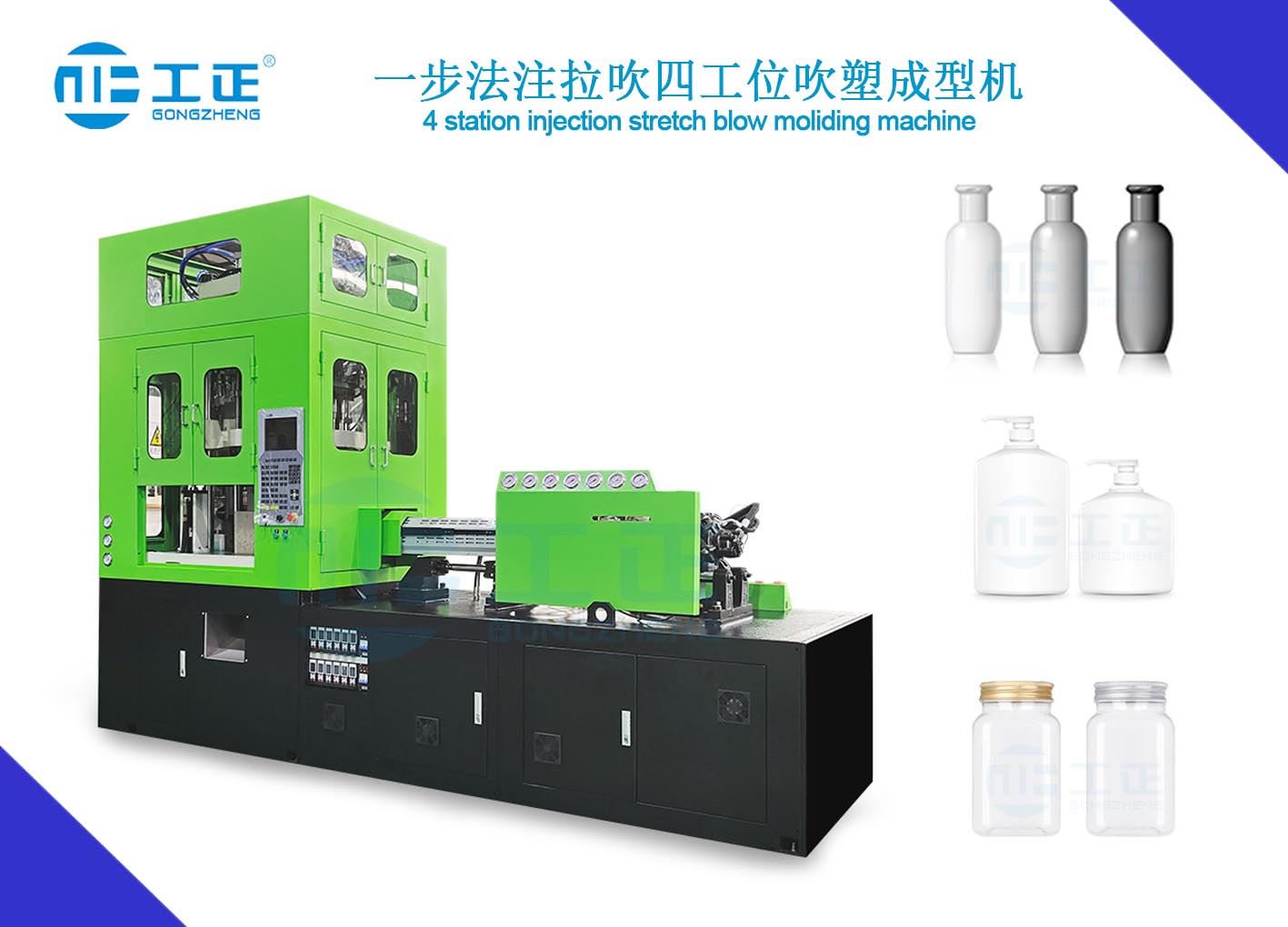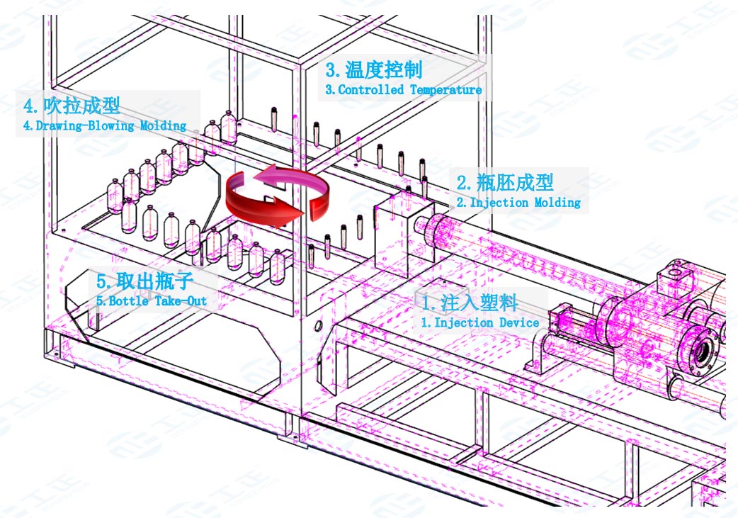 FS系列是4工位一步法注拉吹中空成型機,廣泛適用于生產(chǎn)各種材質(zhì)的塑料容器。它集合注塑、溫度調(diào)節(jié)、拉伸&吹氣,產(chǎn)品脫模四個工位于一臺設(shè)備上,緊湊但功能強大。由于多了一個調(diào)溫預(yù)吹的工位,特別適用于需要預(yù)吹塑成型的場合,其生產(chǎn)的瓶子從10毫升到2000毫升。這是一款完美生產(chǎn)高質(zhì)量高附加值的化妝品、衛(wèi)生要求極高的醫(yī)藥包裝、高端水杯及嬰兒奶瓶等容器的設(shè)備。