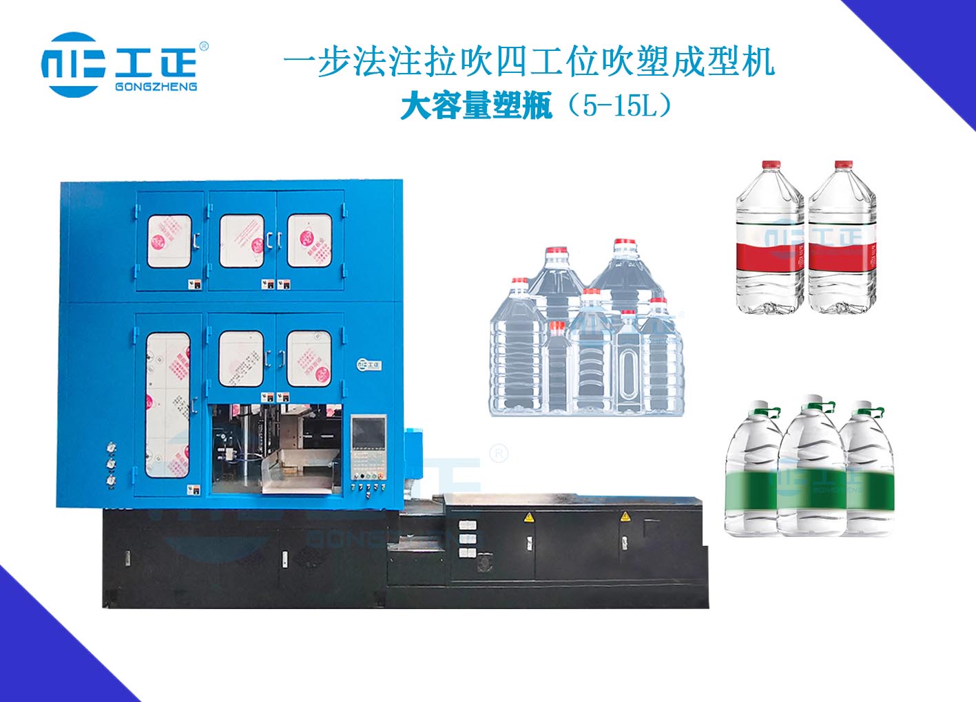 該系列機(jī)型是用于生產(chǎn)各類家用及商用的大容量塑料容器的機(jī)型(5升-15升),同樣集合注塑瓶胚,溫度調(diào)節(jié),拉伸&吹塑以及產(chǎn)品跌落四個(gè)工位于一臺(tái)設(shè)備,結(jié)構(gòu)相對(duì)緊湊。由于利用瓶胚注塑后的余溫進(jìn)行吹瓶,無(wú)需重新加熱瓶胚,在節(jié)省能源的同時(shí),成型出來(lái)的容器物理性能如韌性、抗跌破指標(biāo)、透明度等都得到大大的提高。